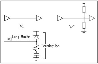 A. 对于点对点(一个输出对应一个输入)连接,可以选择始端串联匹配或终端并联匹配。前者结构简单,成本低,但延迟较大。后者匹配效果好,但结构复杂,成本较高。