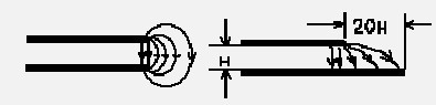 解决的办法是将电源层内缩,使得电场只在接地层的范围内传导。以一个H(电源和地之间的介质厚度)为单位,若内缩20H则可以将70%的电场限制在接地层边沿内;内缩100H则可以将98%的电场限制在内。